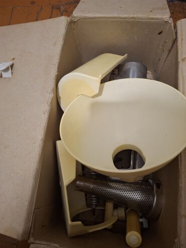 - Продукт подаётся через воронку; шнек проталкивает массу через сито, отделяя сок/пюре от жмыха.