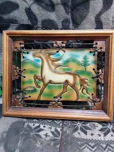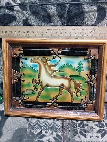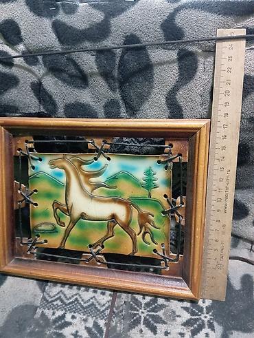 Настенное панно с лошадью в деревянной раме.