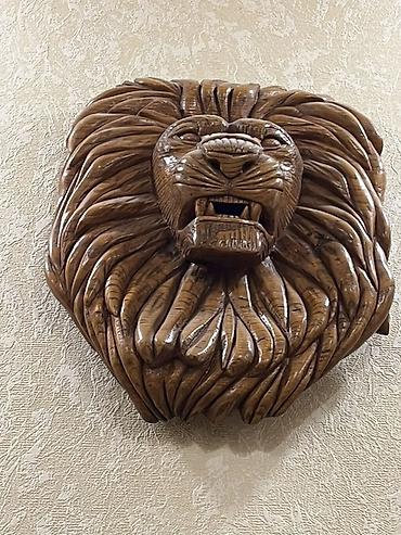 - Рельефная настенная маска льва из дерева. Глубокая прорезная фактура гривы, выразительная мимика, глянцевая обработка поверхности. Подходит для интерьеров в классике, колониальном и этно-стиле.