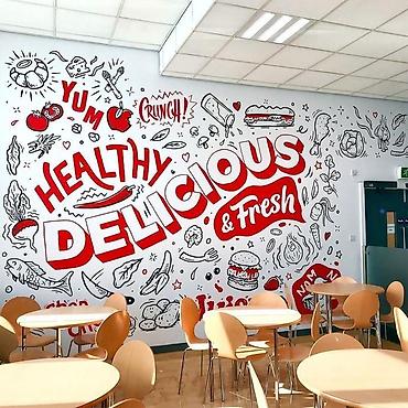 - Профессиональная роспись стен для кафе, ресторанов, фуд-кортов, офисов, коворкингов, баров и bistro.