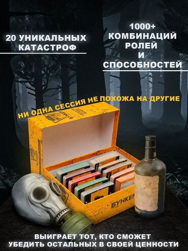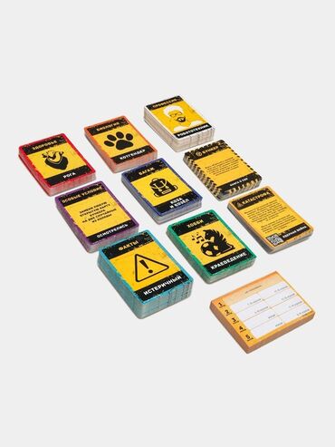 - Наборы карт с категориями: Профессия, Здоровье, Биология, Хобби, Багаж, Факты, Особые условия, Катастрофа, Бункер и др.