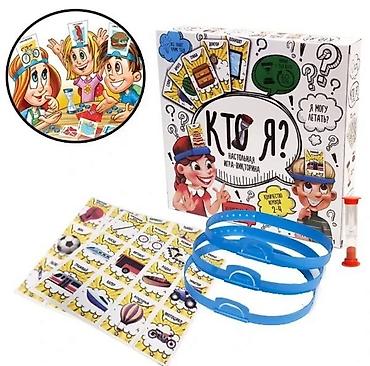 - Весёлая семейная игра на сообразительность, где каждый пытается угадать, кто или что изображено на карточке у него на лбу.