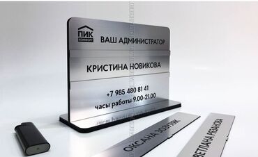 - Назначение: “Бронь/Reserved”, Wi‑Fi с названием сети, таблички администратора/сотрудника, именные настольные шильды, график работы и др.