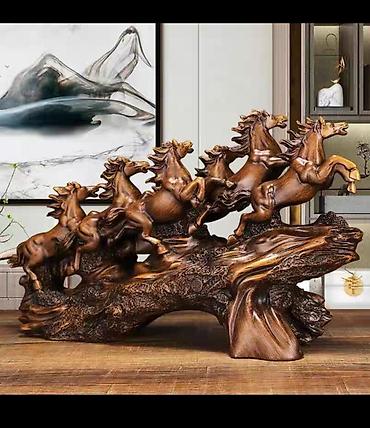 1) Большая композиция «Восемь лошадей» — динамичная сцена стремительного бега, детальная проработка гривы и мускулатуры, фактурное «бревно»-основание.