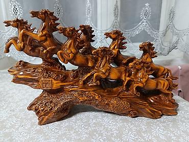 3) Компактная композиция «Галоп» — группа из восьми коней на имитации коряги; на боковой стороне — декоративная квадратная печать.