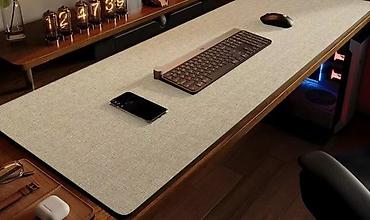 - Формат desk mat: покрывает всю рабочую поверхность, удобно разместить клавиатуру, мышь, телефон и аксессуары.