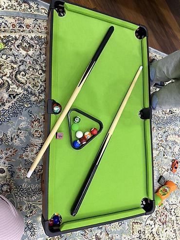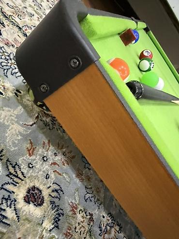 - Компактный стол для игры в пул, формат настольной версии — удобно разместить на столе или полу.