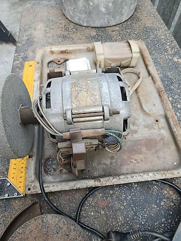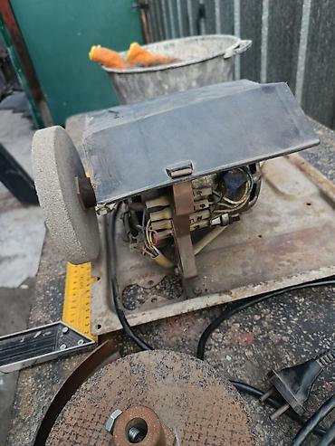 Настольный точильный станок (электроточило) на массивной металлической плите.
