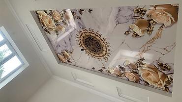 Натяжные потолки с фотопечатью и декоративными орнаментами - Варианты дизайна: классические восточные узоры, флористические композиции, «небо с облаками и птицами», 3D-эффекты с объемными цветами....