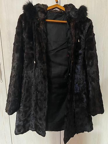 Шуба, натуральный мутон, с капюшоном и натуральным мехом на нем. Размер М. Очень теплая. Идеальное состояние. Цена 10 000 сом. Звоните только на w.a.