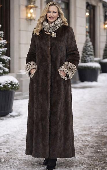 Шуба из норки, классический прямой крой, длина миди/длинная. Цвет: насыщенный коричневый с благородным переливом. Натуральный густой мех с мягким блеском. Тёплая, лёгкая, элегантная. В идеальном со...