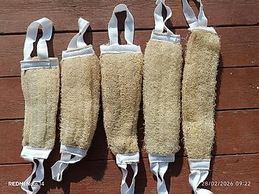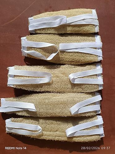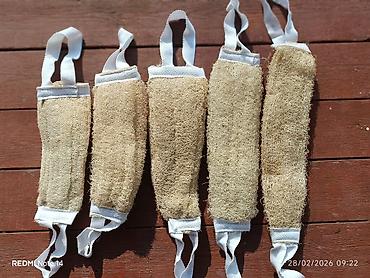 - Форма: продолговатые цилиндры/чехлы из люфы, простроченные для плотности и равномерного скраба.