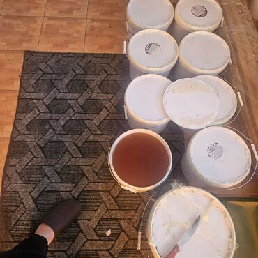 Предлагается натуральный иссыкулсьский мед, представленный в удобных белых ведрах. Мед имеет насыщенный янтарный цвет и жидкую консистенцию, что указывает на его свежесть и качество. Ведра с медом аккуратно упакованы и готовы к транспортировке или хранению. Этот мед идеально подходит для использования в кулинарии, как подсластитель для напитков или как полезное дополнение к рациону.