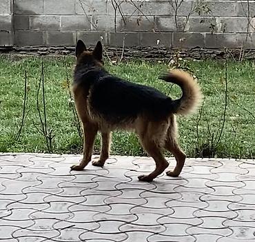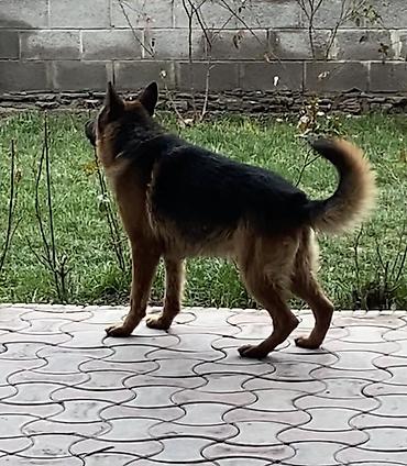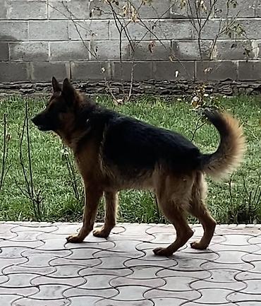 Немецкая овчарка, молодая собака классического чепрачного окраса. Особенности: - Выразительная породная голова, стоячие уши, тёмная маска. - Плотная, густая шерсть, чёрно‑рыжий окрас. - Крепкий ко...