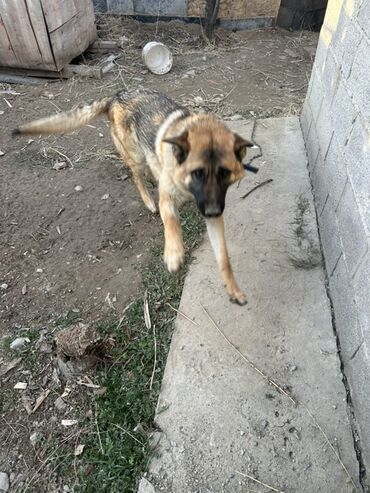 Немецкая овчарка, окрас черно‑рыжий (зонарный). Средне-крупный формат, крепкий костяк, густая плотная шерсть с выраженным подпалом, тёмная маска. Пропорциональная голова, стоячие уши, правильный прикус визуально. Хвост пушистый, саблевидный. Подходит для охраны двора/дома и активных прогулок. Энергичная, контактная, ориентирована на человека, хорошо реагирует на внимание и угощение. На привязи спокойная, на свободе подвижная, проявляет интерес к обучению, быстро включается в работу.
