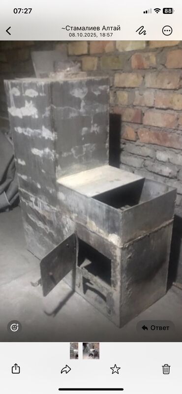 Надёжная печь для бани + Бак для воды 📍 Локация: г. Манас (Джалал-Абад) Продаю надежную железную печь для бани. Металл советский, толстый — не прогорит еще много лет. В комплекте идет круглый ба...