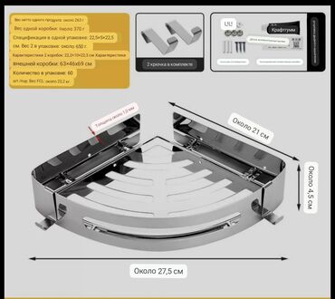 Представляем угловую полку-органайзер из хромированного металла, предназначенную для эффективного использования пространства в ванной комнате. Эта полка, выполненная в серебристом цвете, идеально п...