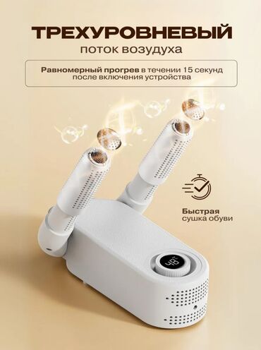 Незаменимые устройство-сушилка для обуви. Если ваша обувь промокла в дождь или в снег, сушилка для обуви самая нужная вещь. Не будет не сырости и не приятного запаха. Быстро и эффективно устраняет влагу и неприятные запахи, благодаря равномерному прогреву. Кроме того регулярное использование сушилки продлевает срок службы обуви. Удобные функции автоматического отключения помогут сэкономить электроэнергию и обеспечить безопасность использования. Температура воздуха при сушке-48С. Время нагрева-15сек. Длина шнура-110см. Питание-от сети. Цвет-белый. Данная
