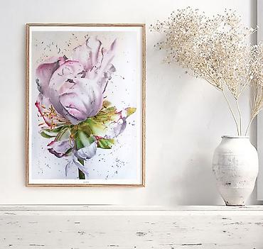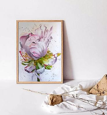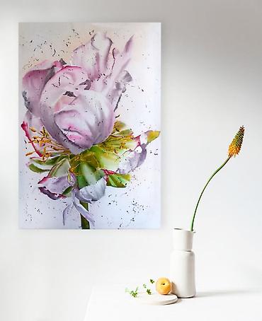 Нежная цветочная композиция, выполненная вручную на натуральном шелке в авторской живописной технике. Картина передаёт хрупкость и воздушность распускающегося цветка: мягкие переливы розовых и жемчужно-белых оттенков создают эффект света, словно лепестки растворяются в пространстве.