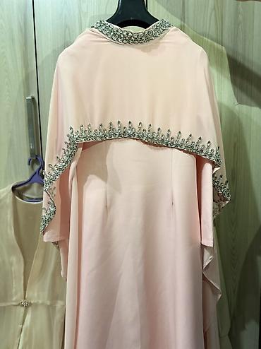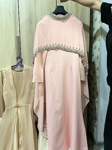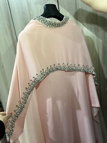 Нежное вечернее платье-абайя пудрово-розового цвета.