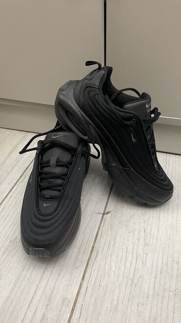 Кроссовки Nike Air Max (женская/унисекс модель) - Цвет: темно‑синий/черный верх, белая подошва, акценты фуксия, белый логотип Swoosh. - Амортизация: видимая воздушная подушка Air Max в пятке для м...