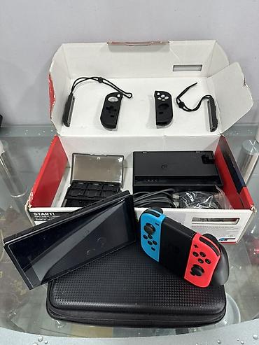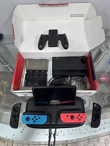 Nintendo Switch (не OLED), неоново‑синий/красный — полный комплект для