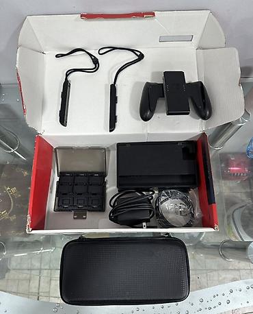 Nintendo Switch (не OLED), неоново‑синий/красный — полный комплект для игры дома и в дороге.
