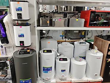 - Бренды на витрине: AquaProm, Gorenje, Tesy, Atlantic/Termal и др. (ассортимент разных линеек и размеров).