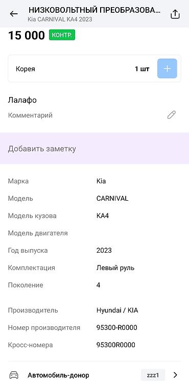 Предназначение: стабилизация/преобразование низковольтного питания бортовой сети, установка в электрическую систему Kia Carnival KA4. Подходит как замена по указанным OEM-номерам.