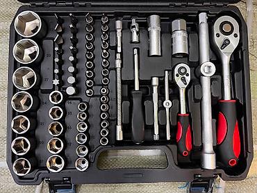 Набор профессиональных инструментовь Leeder Tools, 82 предмета, Cr‑V ( хром‑ванадиевая сталь) в ударопрочном кейсе. Состав и размеры: - Трещоточные ключи 1/2" и 1/4" (24 зуба), реверс,...