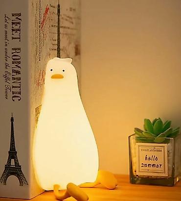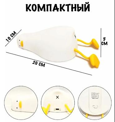 Светящаяся цветная интерьерная лампа-уточка с выключателем не нагревается и абсолютно безопасна для детей. Беспроводной ночник имеет встроенный аккумулятор, которого хватает более чем на 10 часов свечения.
