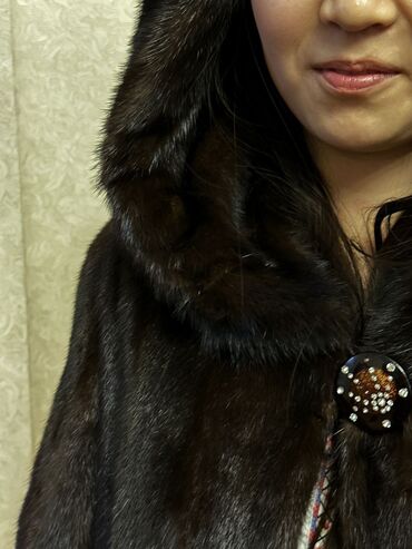 Шуба из натурального меха (визуально — норка). Цвет: Чёрный бриллиант 💎 Описание: -Длина до колен. - Объемный капюшон из того же меха - Застежка: потайные крючки по борту + крупная декоративная ве...