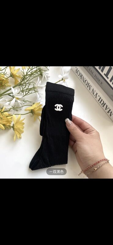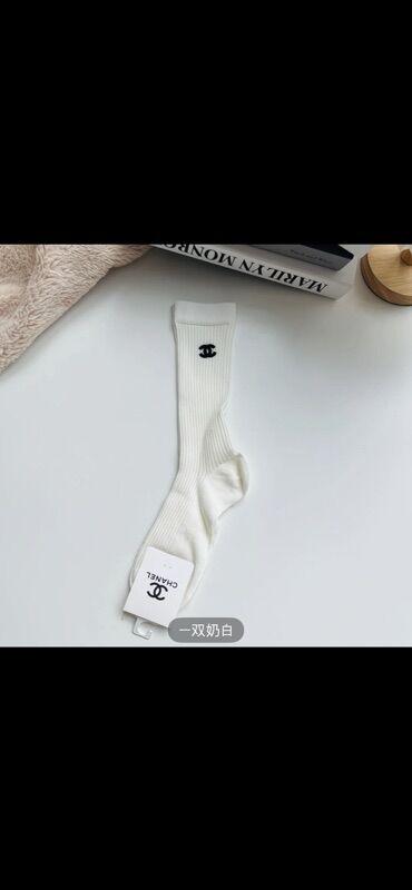 Носки короткие с золотистым логотипом CHAENL и металлическим значком-камелией. - Длина: ниже щиколотки. - Материал: мягкое эластичное полотно (смесь хлопка с добавлением синтетических волокон для ...