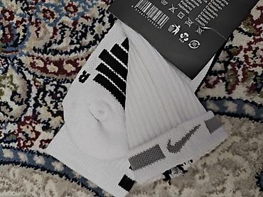 Белые спортивные носки Nike (классическая длина, до середины голени) - Универсальная модель для спорта и повседневной носки - Цвет: белый; контрастный вышитый логотип Swoosh черного цвета на голен...
