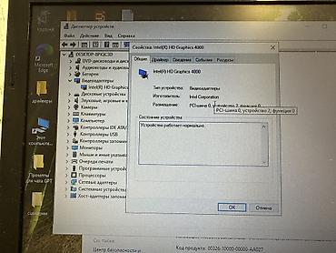 - Наклейка Windows на корпусе; на экране — рабочий стол с установленными приложениями