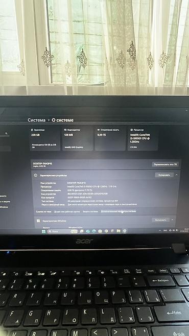 Подойдёт для офиса, учебы и мультимедиа. Фото реальные: крышка с логотипом Acer, вид снизу с вентиляционными прорезями, рабочий стол на экране.