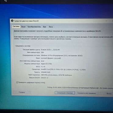 - Модель и производитель: Acer Aspire ES5-576G, BIOS V1.43