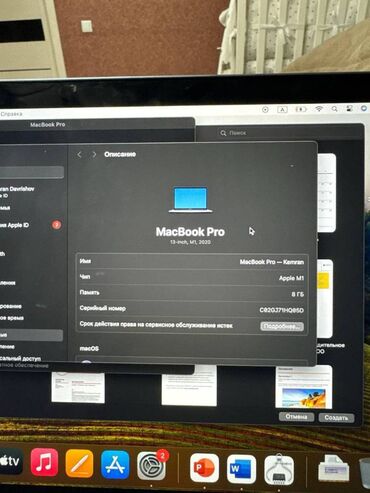 Ноутбук, Apple, 8 ГБ ОЗУ, Apple M1, 13.3 ", Б/у, Для работы, учебы, память NVMe SSD