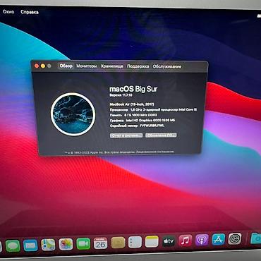 Macbook Air 13 A1466 - Процессор: Intel Core i5 - Оперативная память: 8gb - Накопитель: SSD 256гб - Экран 13.3 дюймов 1600х900 - Количество циклов - Состояние хорошее. Установлен новый MacOS и д...