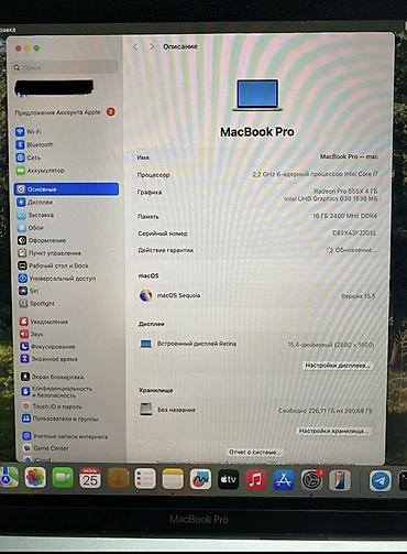- Процессор: 6‑ядерный Intel Core i7 2.2 ГГц
