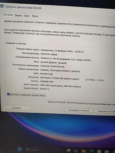 Ноутбук ASUS Vivobook 16 (модель Vivobook_ASUSLaptop M1605YA)
