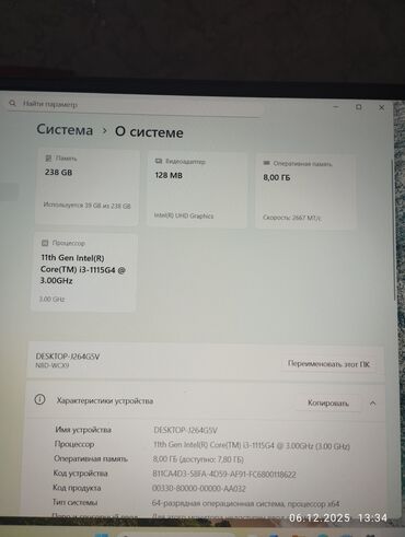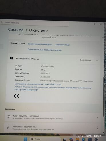 - Операционная система Windows 11 Pro, версия 24H2, сборка 26100.6899 (установлена 05.12.2025), поддержка удаленного рабочего стола и корпоративных функций.