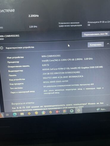 - Процессор Intel (серия Core/Pentium, стандартный мобильный), подходит для учебы, офисных задач, браузера и мультимедиа