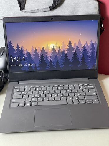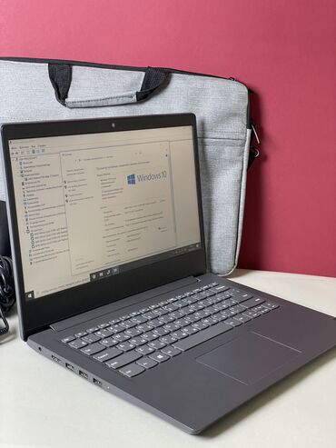 Ноутбук с серым корпусом, оснащенный полноразмерной клавиатурой и большим тачпадом. Устройство имеет тонкий профиль и подходит для повседневных задач, работы или учебы. Модель - Lenovo Процессор - ...