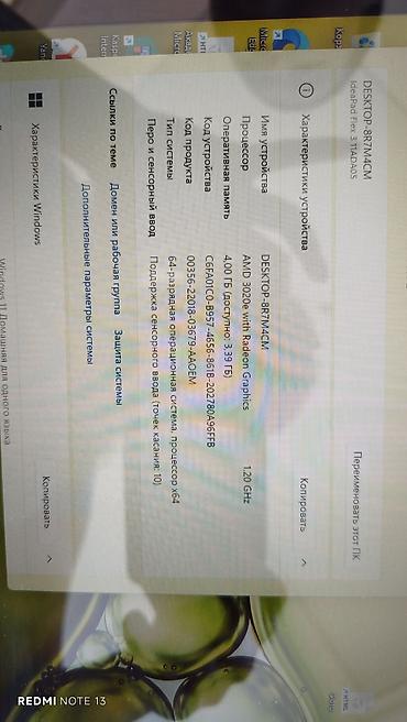 - Процессор: AMD 3020e with Radeon Graphics, 2 ядра, 1.20 ГГц.