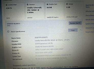 - Процессор: Intel Celeron N2840, 2.16 ГГц (2 ядра)