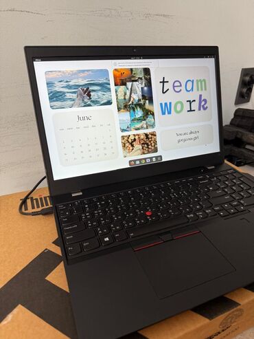 Подходит для работы в офисе и удалённо: комфортный набор текста, точное управление курсором, надежная платформа ThinkPad. Работает от USB‑C адаптера, в комплекте — оригинальная коробка ThinkPad, на фото видно подключённое питание.