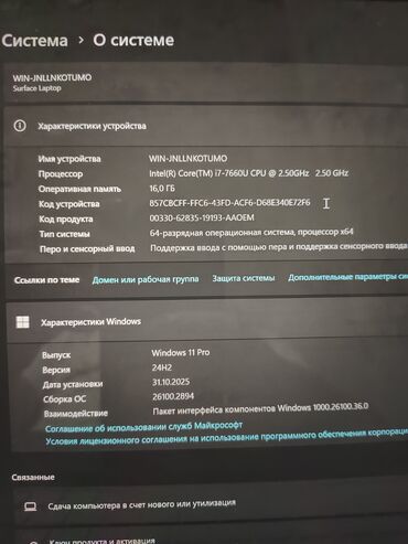 - ОС: Windows 11 Pro, x64 (система поддерживает перьевой и сенсорный ввод; на фото — сведения о системе, выпуск 24H2)