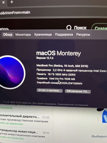 Ноутбук, Apple, 32 ГБ ОЗУ, Intel Core i7, 15.4 ", Б/у, Для работы, учебы, память NVMe SSD