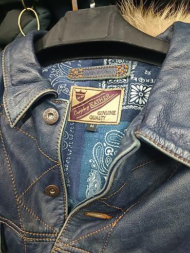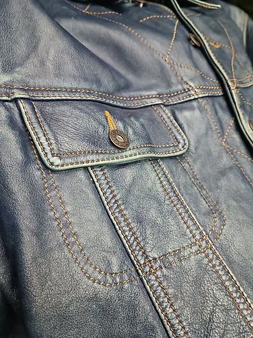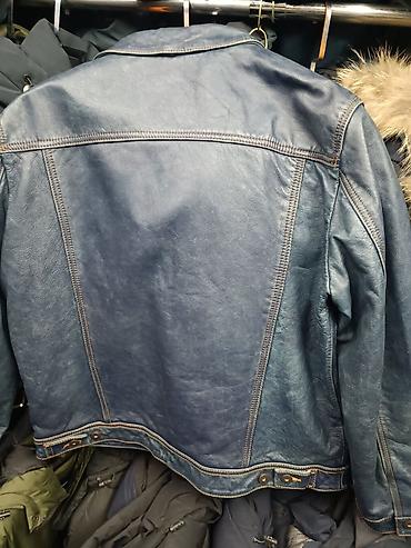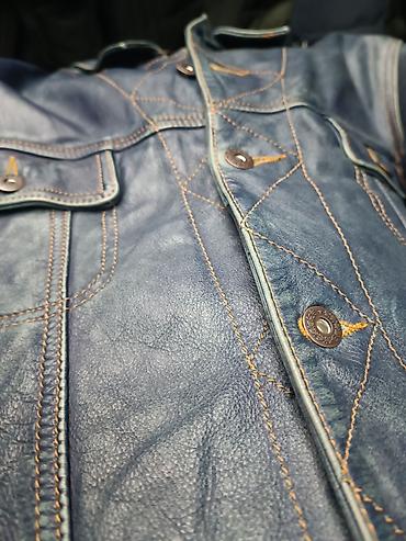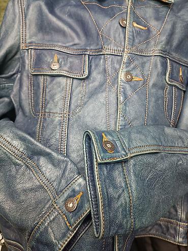 Новая куртка из натуральной кожи,имитирующая джинсовую куртку. Искусственная потёртости. Подойдёт невысокому мужчине до 170 см. Размер 50-52. Стильная и по сезону.